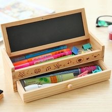 包邮 韩国文具可爱双层文具盒 创意抽屉木制笔盒 带小黑板可写字