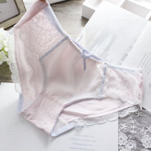 猫耳朵恬静柔美轻柔透气棉质镶嵌纯色白色蕾丝女短裤三角内裤