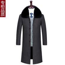 狐狸毛领冬季羊毛呢大衣男中老年男士休闲长款大衣外套风衣爸爸装