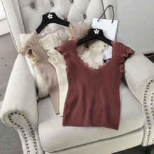 M43#东大门气质蕾丝拼接包肩背心性感修身无袖V领针织衫上衣女夏