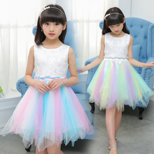 女童连衣裙夏背心纱裙童装2017夏装小女孩彩虹裙儿童公主裙演出裙
