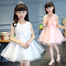 2017新款夏季女童连衣裙儿童礼服公主裙中大童六一表演服白色纱裙