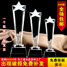 大胡子直五角星水晶奖杯 个性定制 现货厂家直供 荣誉纪念颁奖用