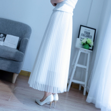 2016夏网纱百褶裙半身裙中长款长裙白色a字纱裙纯色仙女裙大摆裙