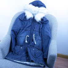冬季中长款大毛领牛仔衣外套口袋加绒女式加厚长袖外衣清仓