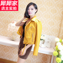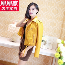 欧洲站2016秋冬新款水洗机车pu皮衣短款女士显瘦小外套斜拉链潮