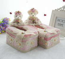 高档小熊蕾丝布艺家用抽纸盒欧式创意客厅纸抽盒可爱车用纸巾盒