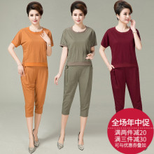 中老年运动女装夏季两件套中年妈妈装短袖夏装七分裤套装40-50岁
