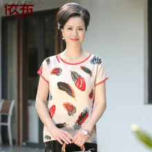 依佈2017新款夏装中老年女装妈妈装短袖针织衫E7B0138