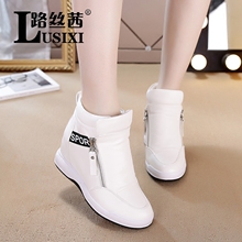 2017春冬韩版内增高运动休闲女鞋潮厚底二棉侧拉链小白鞋高帮单鞋