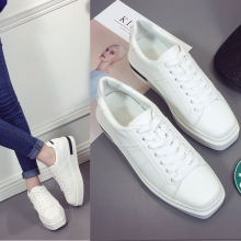 2017春季韩版布洛克方头小白鞋厚底松糕运动鞋真皮原宿女学生单鞋