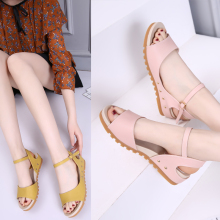 坡跟凉鞋女士夏2017新款中跟百搭舒适平底一字扣带镂空露趾学生鞋