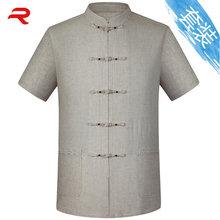 唐装男短袖中式服装盘扣套装中老年亚麻汉服棉麻爸爸装加肥加大