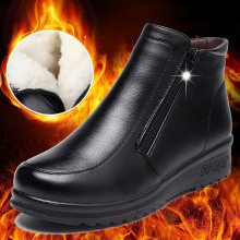 妈妈棉鞋平底短靴中老年女鞋平跟皮鞋真皮冬季中年人保暖加绒老人
