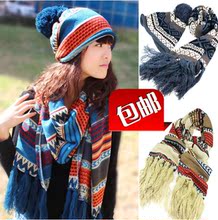 女帽冬围巾两件套帽子韩版针织帽毛线帽子加长加厚滑雪圣诞帽包邮