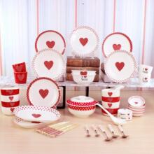 碗碟套装红爱心白骨瓷器餐具家用碗盘韩式陶瓷碗套碗筷子乔迁新居