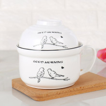 卡通泡面碗方便面泡面杯餐具套装创意可爱韩式陶瓷汤碗带盖送勺筷