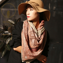 浮梦灵犀 双层手绘大方巾保暖围巾欧式复古丝巾女双面大披肩