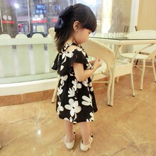 印花小碎花漏肩公主裙儿童连衣裙宝宝雪纺裙子 亲子装母女装 夏装