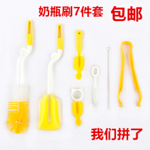 包邮婴儿奶瓶刷7件套装 360度旋转海绵奶瓶清洗刷子 奶嘴刷吸管刷