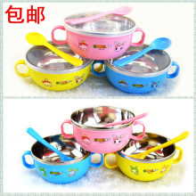 带手柄带勺子宝宝专用不锈钢碗 儿童卡通隔热碗 不锈钢餐具吃饭碗