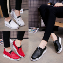 春季新款真皮韩版休闲单鞋子女鞋坡跟厚底松糕底低帮女鞋子工作鞋
