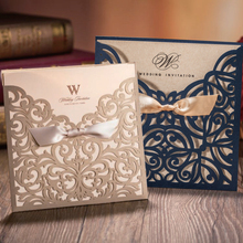 唯思美喜帖欧式香槟金色金结婚请柬镂空蕾丝带请帖蓝色商务邀请函