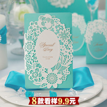 唯思美喜帖欧式 蓝色 韩式请帖蕾丝结婚请柬定制照片个性定制创意