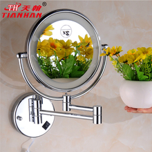 天翰卫浴壁挂式薄款带LED灯双面美容镜子浴室放大伸缩镜化妆镜