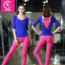 2017春夏新款专业瑜伽服三件套装女瑜珈中袖健身服跑步服时尚显瘦