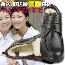 灿派阳光冬季真皮短靴女中老年人妈妈棉鞋羊毛牛筋底雪地靴保暖鞋
