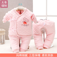 新生儿男女宝宝系带纯棉保暖内衣三件套装衣服0-3个月婴儿春秋季