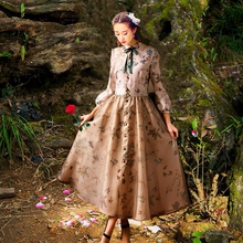 魅色 红玫瑰的爱情2017春装新款复古文艺学院优雅连衣裙森女长裙