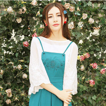 魅色 天真的美好2016夏季复古浪漫百搭宽松绣花白色上衣雪纺衫