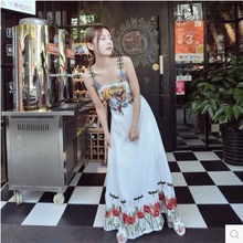 海边度假沙滩裙重工刺绣大摆长裙2017夏装新款吊带裙长款连衣裙仙