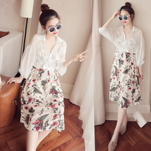 迷彩防晒衣女中长款雪纺开衫薄外套韩版潮夏天海边度假空调小外衣