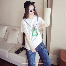 蕾丝小衫女韩版潮胖mm大码女装夏天衣服女宽松t恤套头打底衫短袖