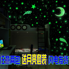 荧光星星月亮夜光立体墙贴 卧室儿童房创意3d墙贴套装可移除包邮
