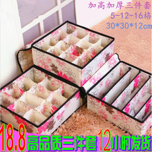 文胸内衣收纳盒有盖三件套 布内衣内裤袜子衣柜抽屉收纳盒箱 包邮