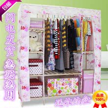 实木布衣柜特价 加固加厚布衣柜 实木印花牛津布组装布衣柜 包邮