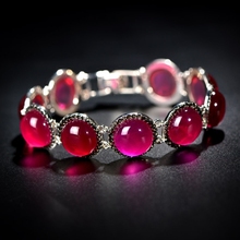 非常泰925泰银合成红刚玉宝石手链女士韩版简约百搭欧美复古饰品