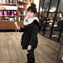 MIKA 冬韩版超厚实真兔毛女童棉衣长款工装羽绒棉带帽棉袄外套