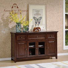 安耐特之家纯实木餐边柜 美式黑胡桃色水曲柳餐边柜橱 玻璃储物柜