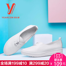 意尔康女鞋春秋休闲平底真皮单鞋坡跟护士鞋牛皮豆豆鞋妈妈鞋子