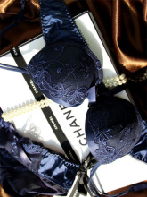 午夜蓝色。内衣少女欧美法国深V性感蕾丝聚拢文胸套装简约刺绣Bra