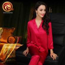 时尚真丝睡衣春秋套装女士可外穿长袖大码两件套冬季桑蚕丝家居服