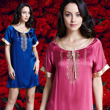 2017新款真丝睡裙 女夏季桑蚕丝优雅纯色加大宽松短袖睡衣家居服