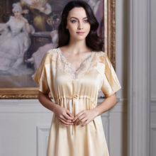 水源周时尚真丝睡衣女夏季性感桑蚕丝睡裙短袖修身丝绸家居服