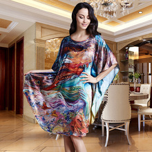 新款真丝睡袍可外穿100%桑蚕丝睡衣女士夏季蝙蝠袖大码丝绸家居服