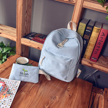 2016韩版新款小豆芽帆布双肩包女纯色简约高中学生书包休闲电脑包